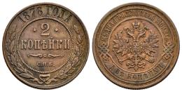 Russia. Alexander II. 2 kopeks. 1876. Saint Petesburg. CПБ. (Km-Y10.2). (Bitkin-526). Ae. 6,53 g. Choice VF. Est...35,00.