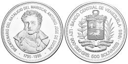 Venezuela. 500 bolivares. 1995. (Km-72). Ag. 31,46 g. Bicentennial of the birth of Marshal Antonio José de Sucre. PROOF. Est...45,00.