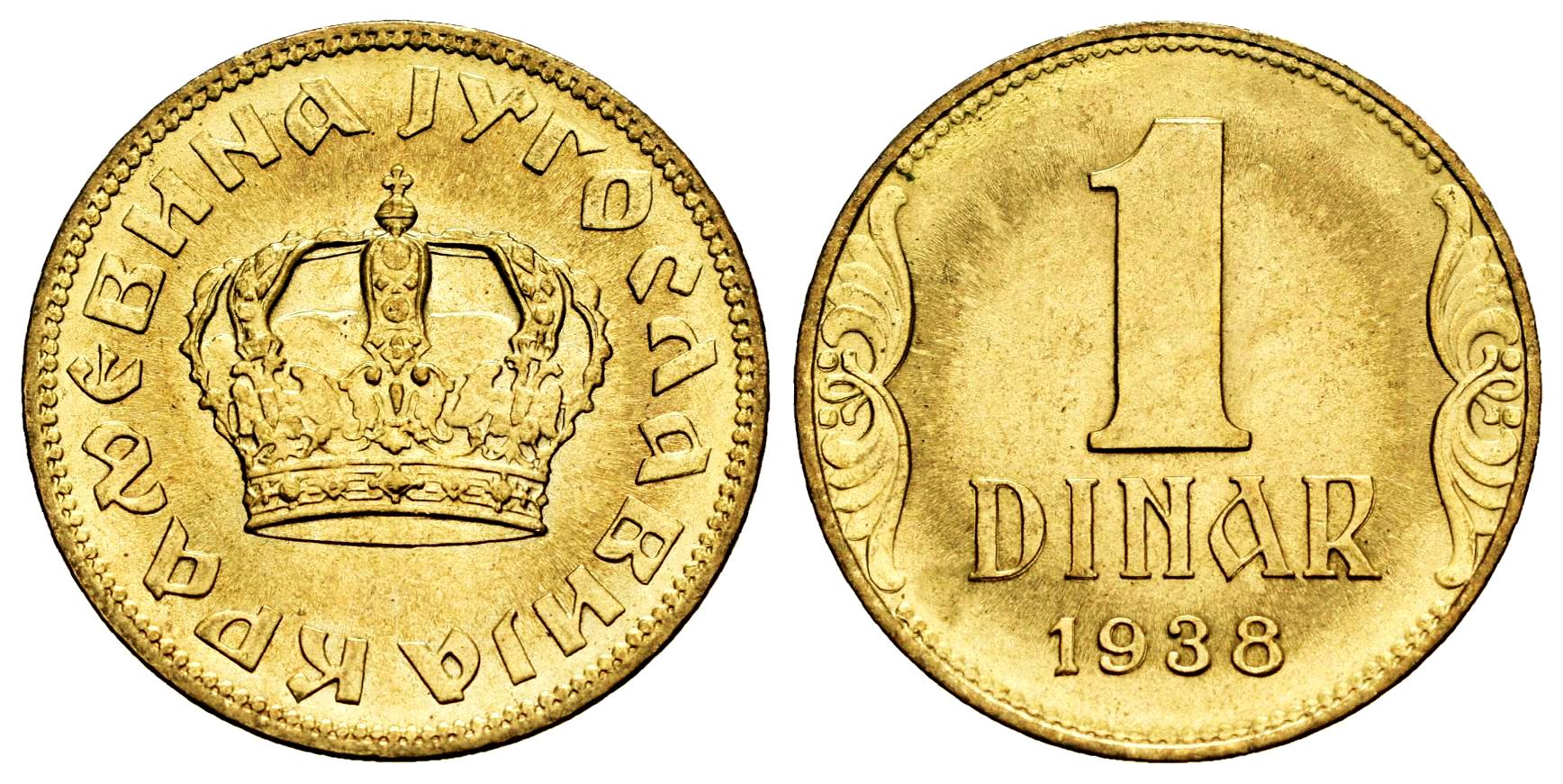 Yugoslavia. 1 dinar. 1938. (Km-19). 3,52 g. Mint state. Est...35,00.