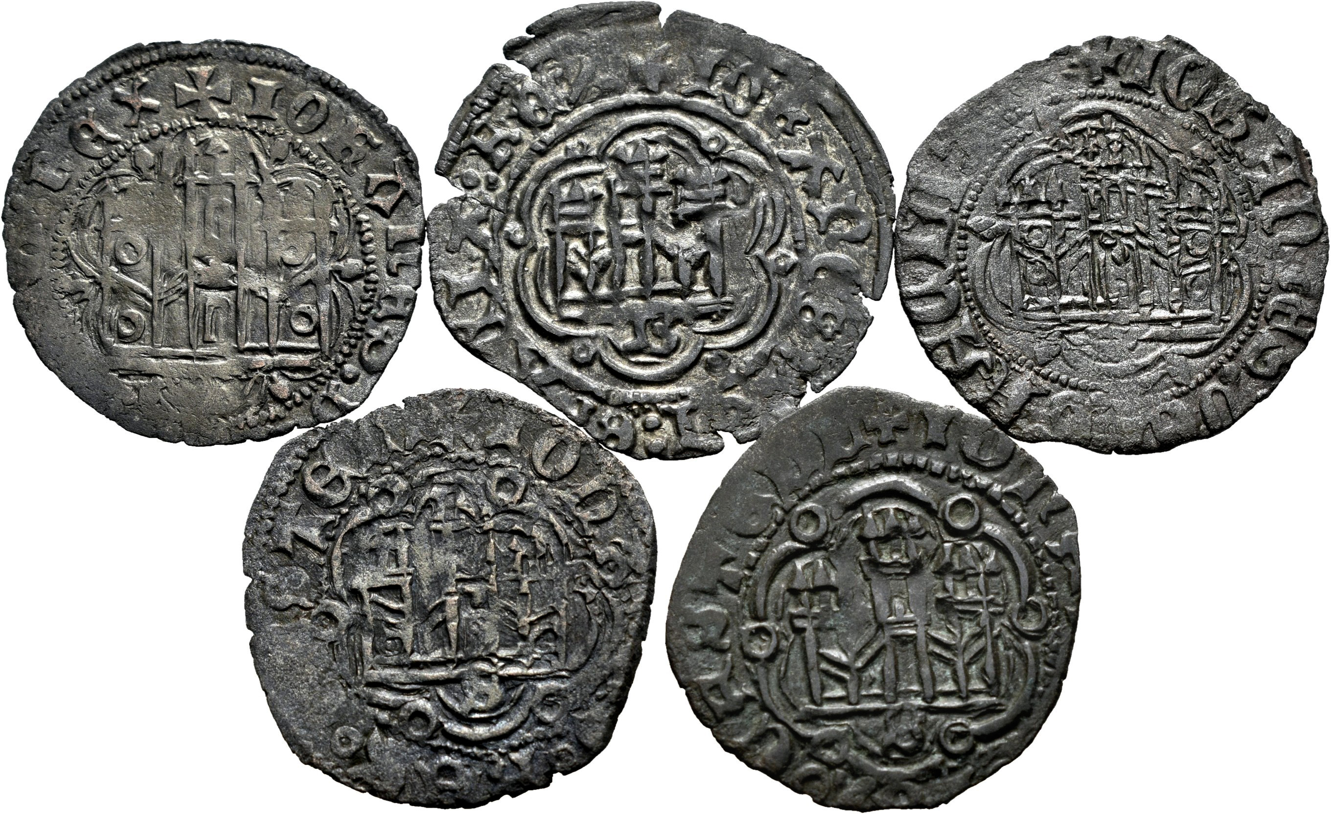 Lot of 5 blancas of Juan II from different mints. Ve. It is essential a rigorous examination of the lot. ONLY SHIPPING TO SPAIN PENINSULA. NO RETURNS ALLOWED. VF/Choice VF. Est...60,00.