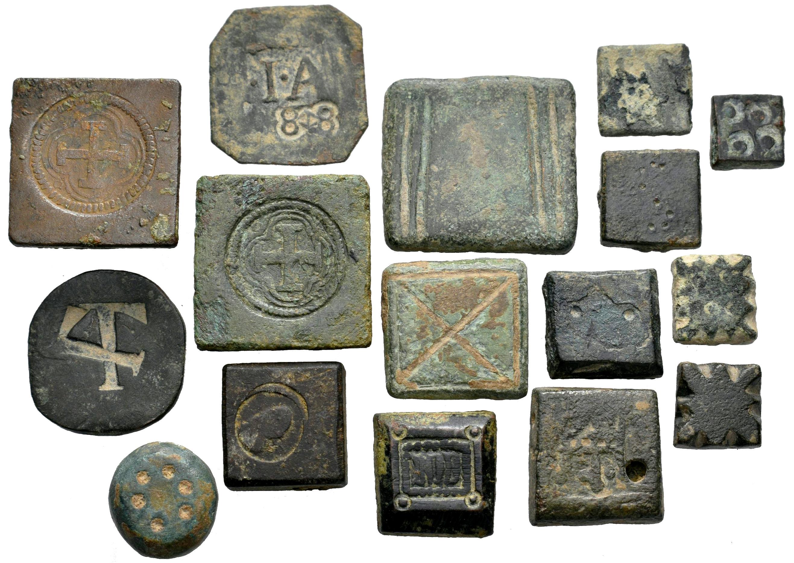 Lot of 16 Weights. Variety of formats and weights with different markings covering different periods. Ae. It is essential a rigorous examination of the lot. ONLY SHIPPING TO SPAIN PENINSULA. NO RETURNS ALLOWED. Choice F/Choice VF. Est...300,00.