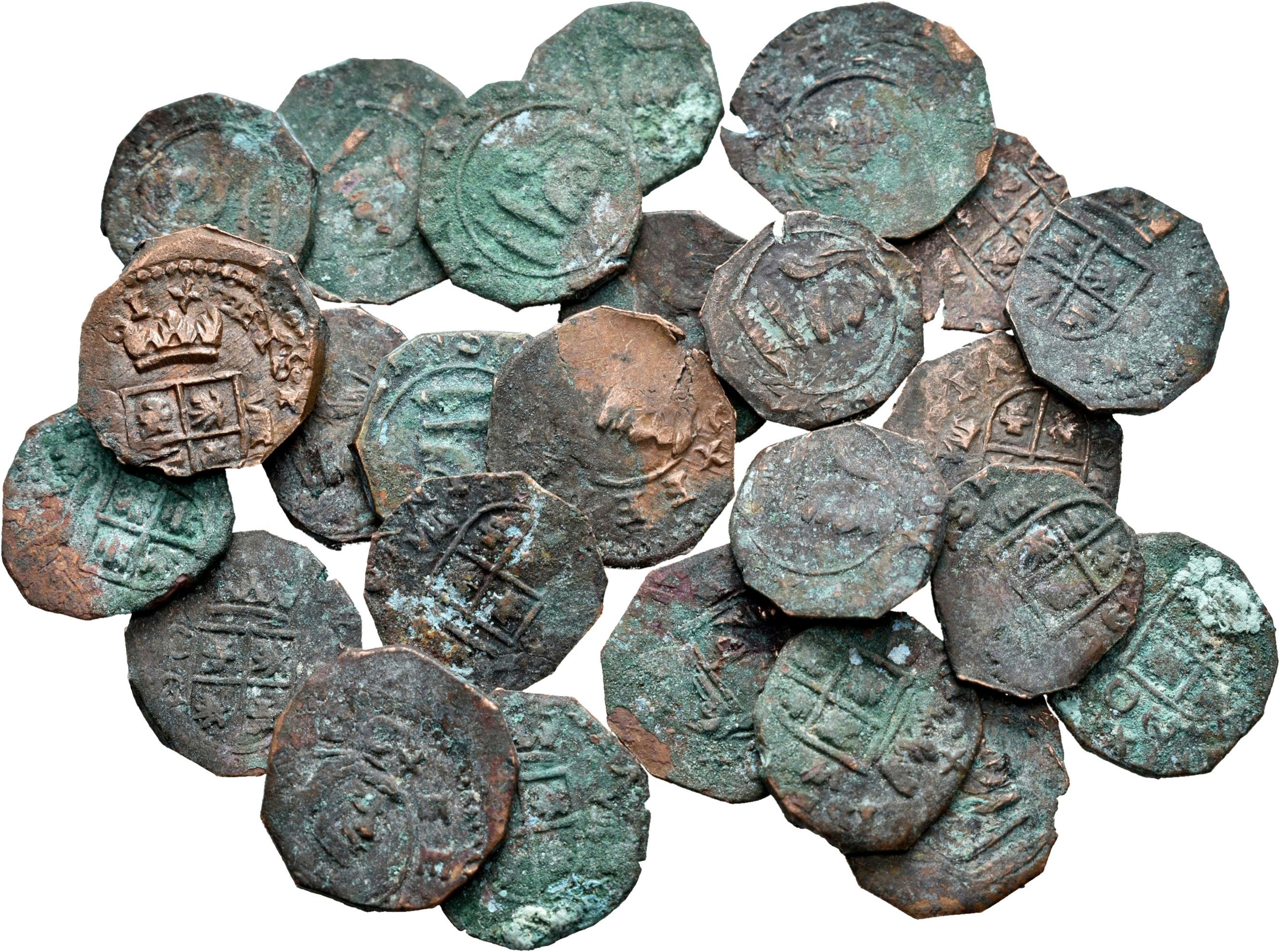 Lot of 25 pieces Philip IV copper with verdigris remains. It is essential a rigorous examination of the lot. ONLY SHIPPING TO SPAIN PENINSULA. NO RETURNS ALLOWED. F. Est...75,00.