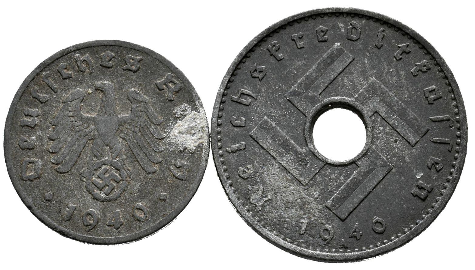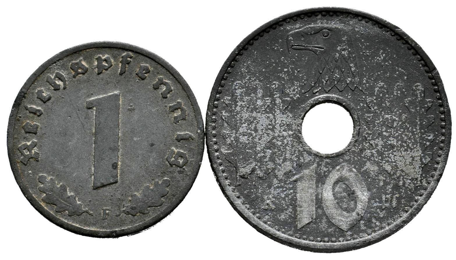Lot of 2 German coins; 1 reichsmark 1940, 10 reichspfening 1940. It is essential a rigorous examination of the lot. ONLY SHIPPING TO SPAIN PENINSULA. NO RETURNS ALLOWED. Almost VF. Est...70,00.