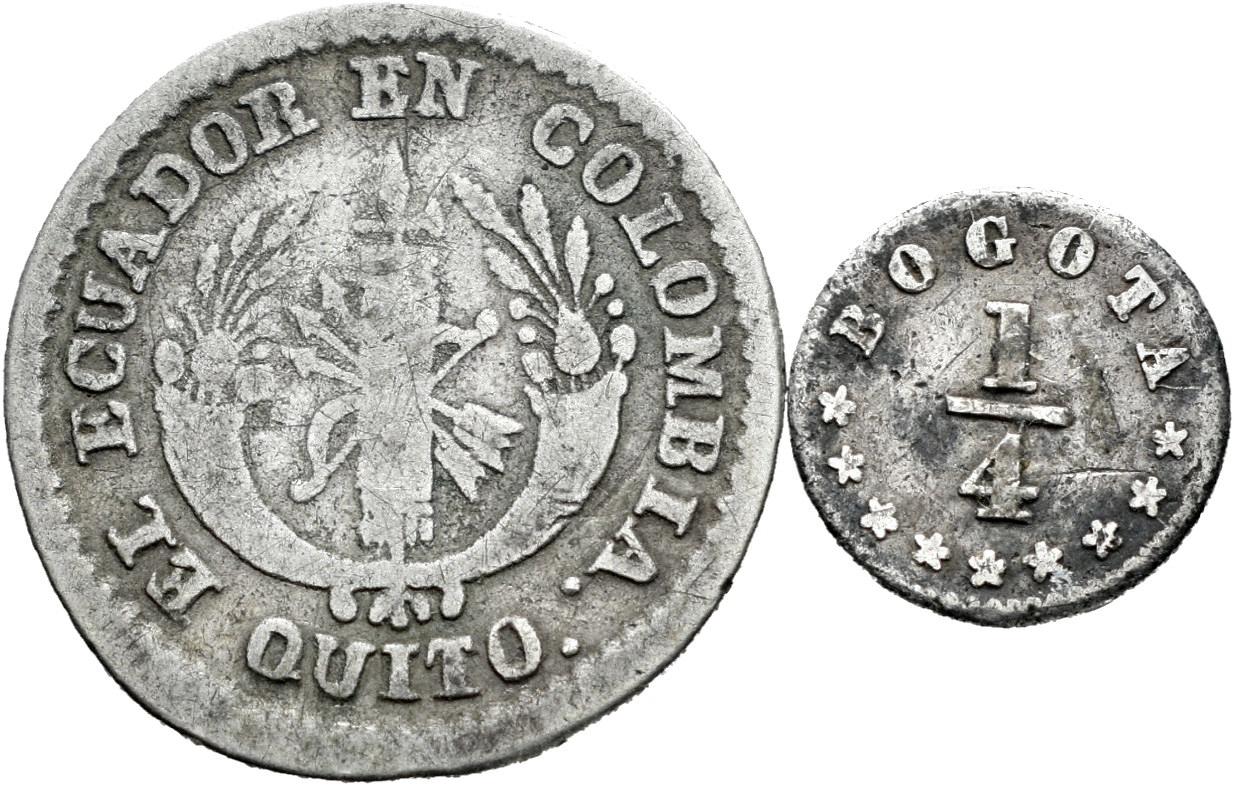 Lot of 2 coins, 2 reales 1835 Quito and 1/4 décimo 1884 Bogotá. It is essential a rigorous examination of the lot. ONLY SHIPPING TO SPAIN PENINSULA. NO RETURNS ALLOWED. Almost F/Choice F. Est...25,00.