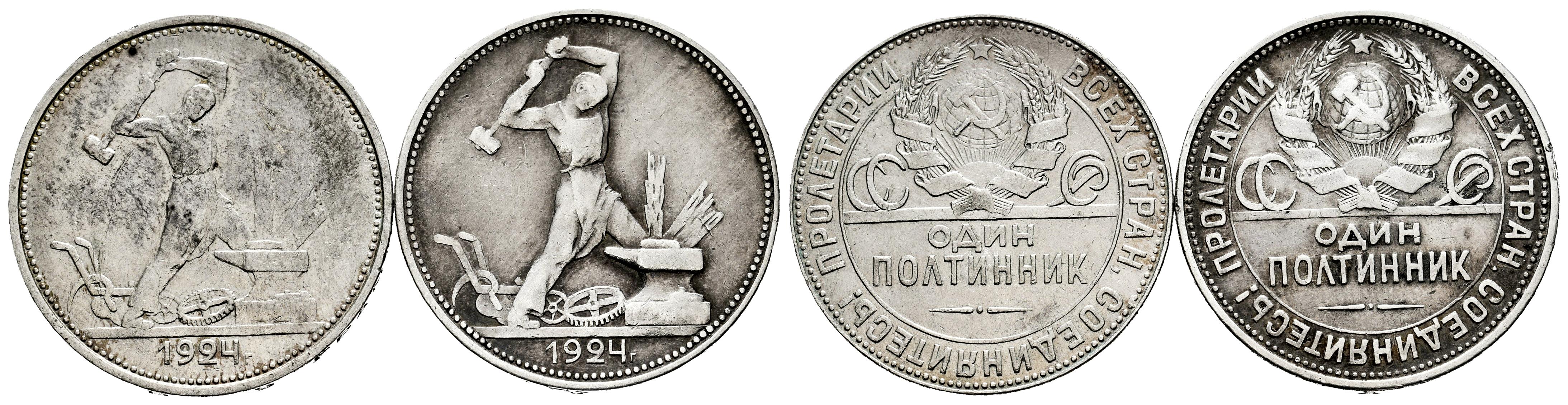 Lot of 2 coins from Russia, 1 rouble 1924. It is essential a rigorous examination of the lot. ONLY SHIPPING TO SPAIN PENINSULA. NO RETURNS ALLOWED. Almost VF/VF. Est...50,00.