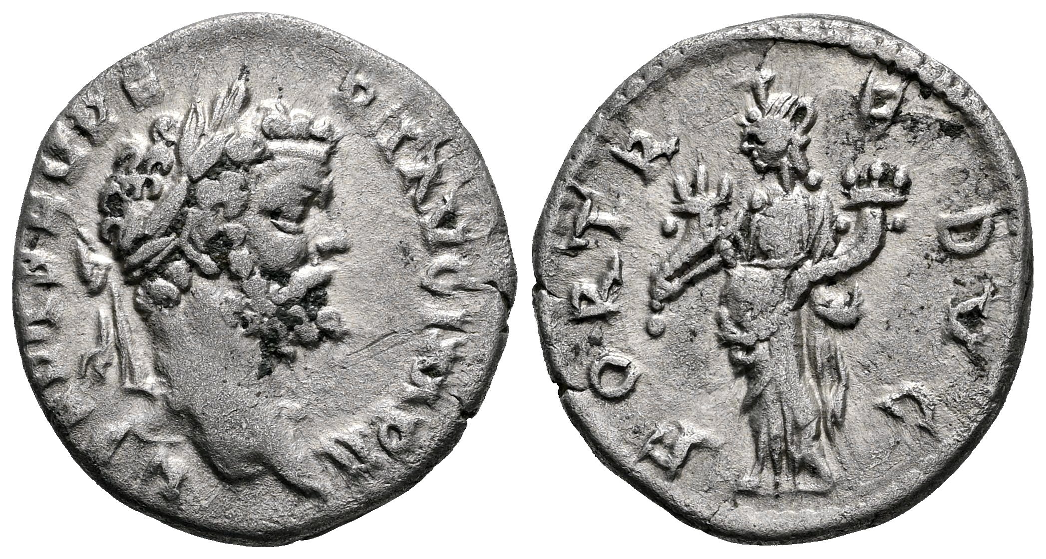 Septimius Severus. Denarius. 196-197 AD. Laodicea ad Mare. (Ric-477A var.). (Tesorillo-Sep. Severo 7, Plate Coin). Anv.: L SEPT SEV PERT AVG IMP II. Laureate head to right. Rev.: FORT REDVC Fortuna standing front, head to left, holding rudder in her right hand and cornucopiae in her left. Ag. 3,11 g. Very rare. Ex Soler & Llach 1069 (20/12/2011), lot 2596. VF. Est...90,00.