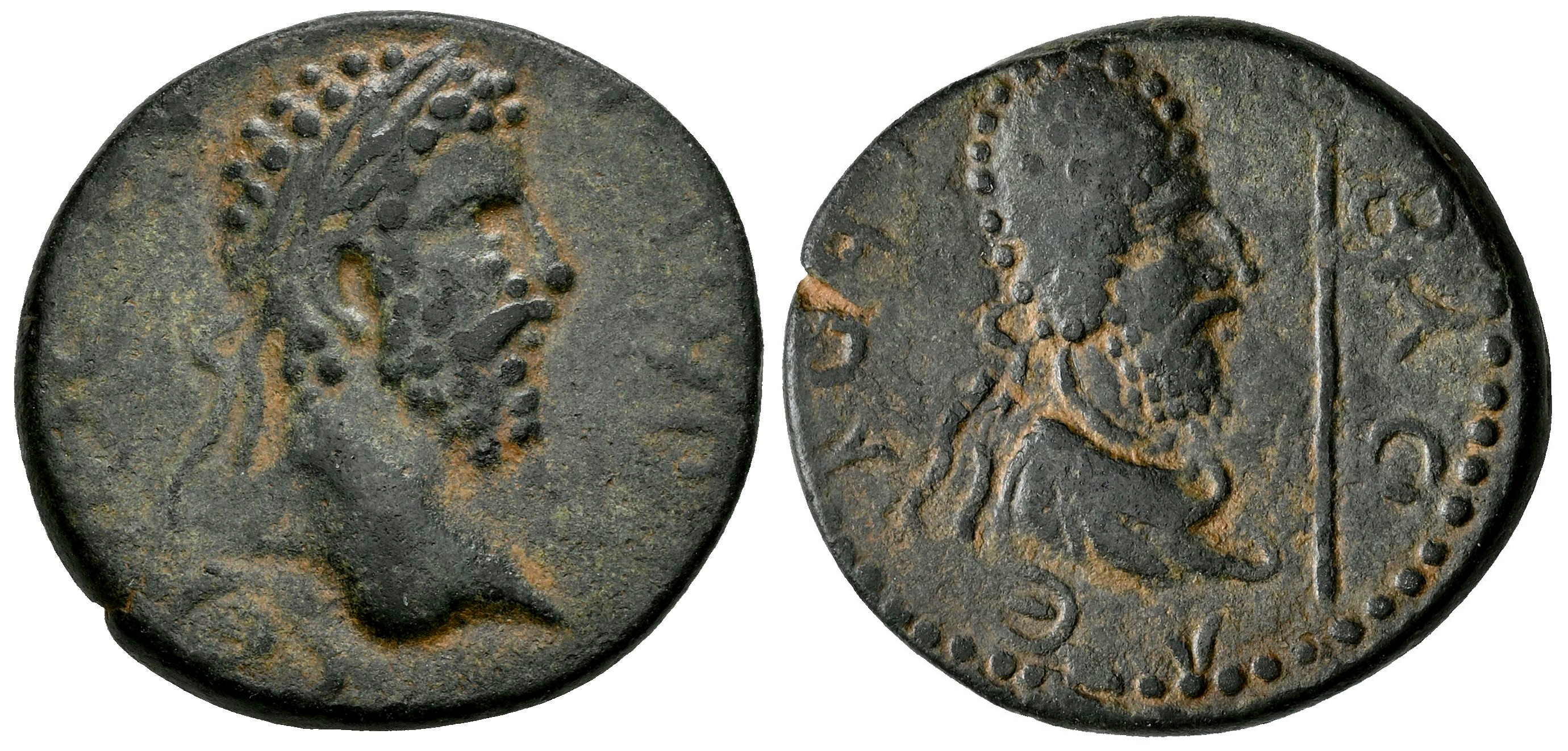 Septimius Severus with Abgar VIII. AE 22. 193-211 AD. Mesopotamia. Edessa. (Bmc-14/26). (Tesorillo-Sep. Severo 47, Plate Coin). Anv.: Laureate head of Septimius Severus right. Rev.: BAC ΛЄ ACq ..., diademed and draped bust of Abgar VIII right, scepter before. Ae. 8,34 g. Ex Roma Numismatics, Vcoins. (July 2008). Almost VF/VF. Est...90,00.