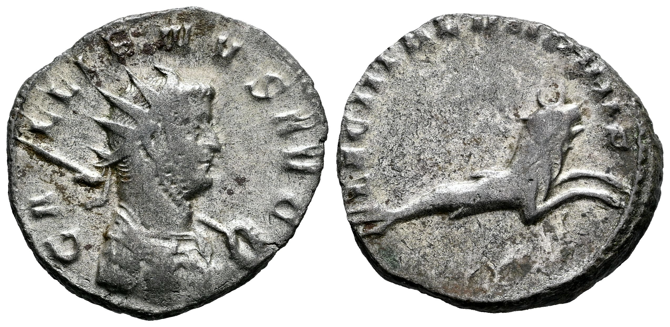 Gallienus. Antoninianus. 261 AD. Mediolanum. (Ric-Unlisted). (MIR-987s). (Tesorillo-Galieno 24, Plate Coin). Anv.: GALLIENVS AVG Radiate and cuirassed bust to right, holding spear over his left shoulder. Rev.: LEG I ITAL VII P VII F Taurocamp to right. Bi. 4,29 g. Extremely rare. MIR citing only 2 known samples. Acsearch shows only 3 samples, of which this is one.. Ex J. Vico 133 (15/11/2012), lot 4491. Included original label. Choice F/Almost VF. Est...300,00.