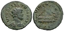 Allectus. Quinarius. 293-296 AD. London. (Ric-V II 55). (Burnett-112). (Tesorillo-Alecto 1, Plate Coin). Anv.: IMP C ALLECTVS P F AVG, radiate, draped and cuirassed bust to right. Rev.: VIRTVS AVG, galley sailing to left; QL in exergue. Ae. 2,37 g. Choice F/VF. Est...120,00.