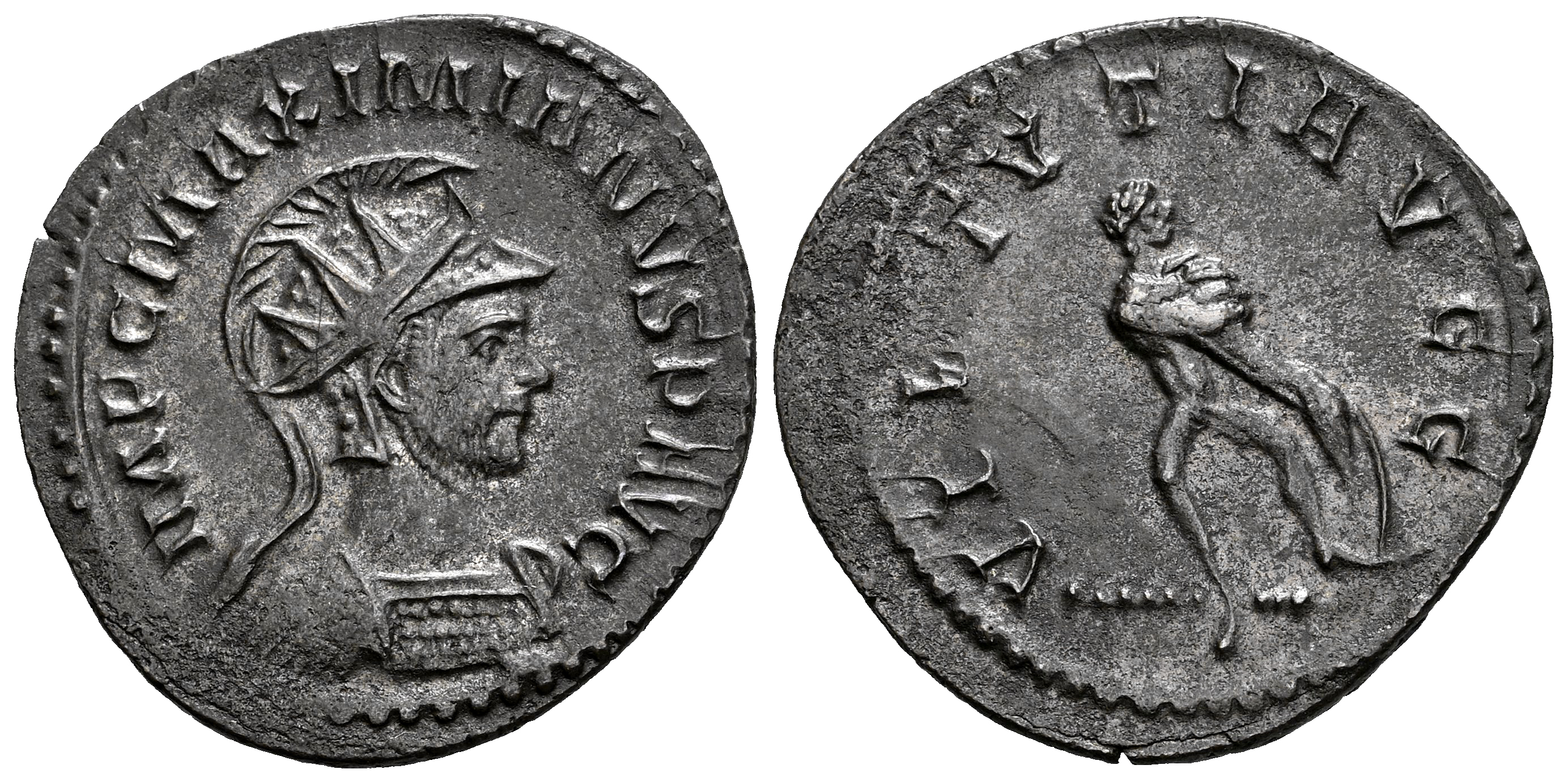 Maximianus Herculius. Antoninianus. 287-289 AD. Lugdunum. (Ric-V 2 458). (Bastien-218). (Tesorillo-M. Hércules 22, Plate Coin). Anv.: IMP C MAXIMIANVS P F AVG, radiate, helmeted and cuirassed bust right. Rev.: VIRTVTI AVGG, Hercules standing left, strangling the Nemean Lion. Bi. 2,98 g. Ex Rutten & Weiland, Vcoins (November 2006). Almost XF/Choice VF. Est...60,00.