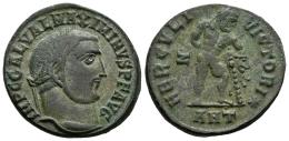 Maximino II. Follis. 310-313 AD. Antioch. (Ric-VI 170b var.). (Tesorillo-M II. Daza 8, Plate Coin). Anv.: IMP C GAL VAL MAXIMINVS P F AVG, laureate head right. Rev.: HERCVLI VICTORI, Hercules standing right, holding lion skin and club; Z in left field, ANT in exergue. Bi. 4,87 g. Scarce. Choice VF. Est...50,00.
