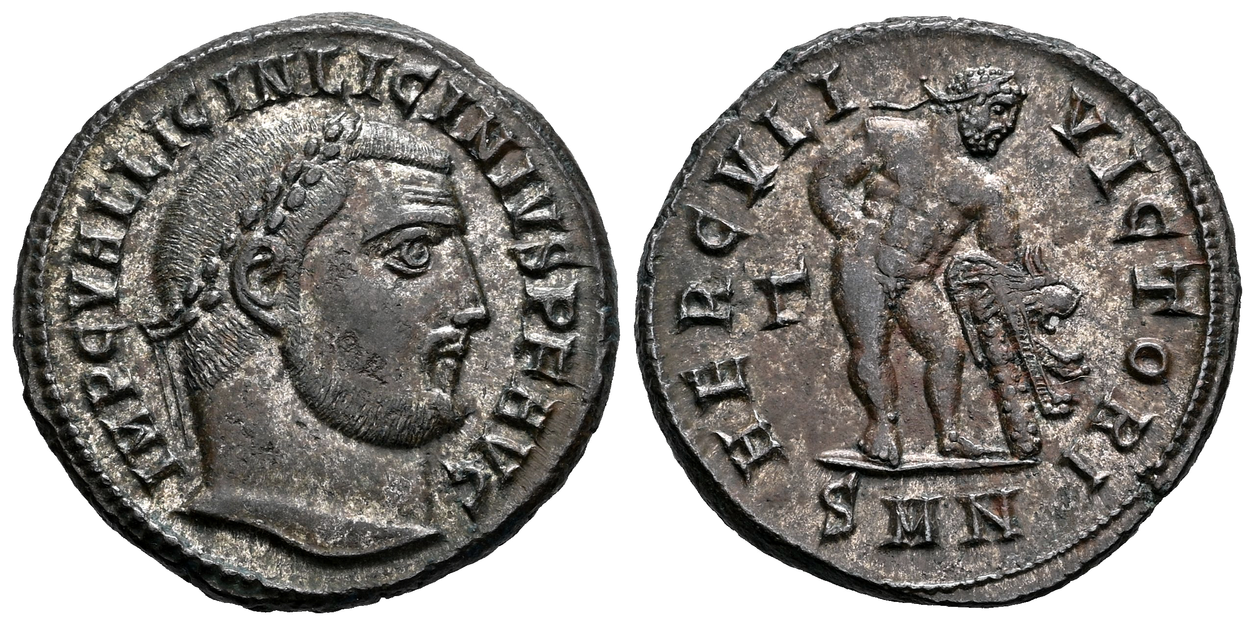 Licinius I. Follis. 311-313 AD. Nicomedia. (Ric-Unlisted). (C-59). (Tesorillo-Licinio I 12, Plate Coin). Anv.: IMP C VAL LICIN LICINIVS P F AVG, laureate bust right. Rev.: HERCVLI VICTORI, Hercules standing right, leaning on club covered by lion skin; Γ in left field, SMN in exergue. Bi. 5,47 g. Very rare. We have only located one other similar specimen, see Helios Numismatik 1 (04/17/2008), lot 581. Almost XF/XF. Est...300,00.