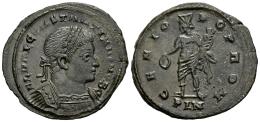 Constantinus I. Follis. 307 AD. London. (Ric-VI 89b). (Tesorillo-Constantino I 39, Plate Coin). Anv.: FL VAL CONSTANTINVS NOB C, laureate, draped and cuirassed bust to right. Rev.: GENIO POP ROM, Genius, with modius and draped, standing to left, holding patera and cornucopiae; PLN in exergue. Ae. 6,58 g. Rare. Ex London Ancient Coins Ltd 6 (October 2011), lot 261. Included original label. Almost XF/Choice VF. Est...120,00.
