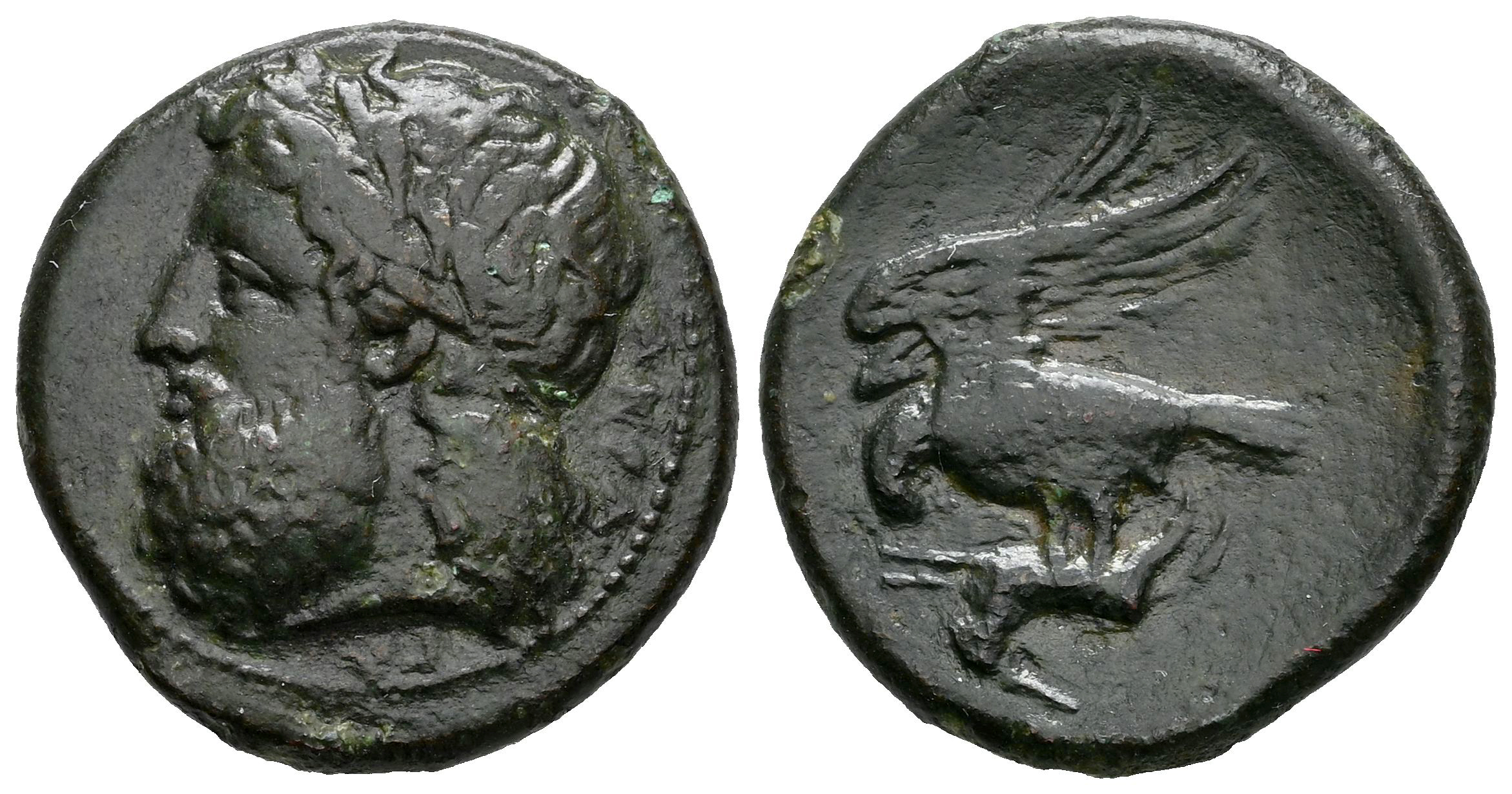Sicily. Akragas. AE 21. 338-317 BC. (CNS-116). (SNG Morcom-536). (Hgc-2, 164). Anv.: Laureate head of Zeus to left; ΑΚΡΑΓΑΝΤΙΝ behind. Rev.: Eagle standing to left on hare; ¿uncertain letter below wings?. Ae. 6,05 g. Choice VF. Est...100,00.