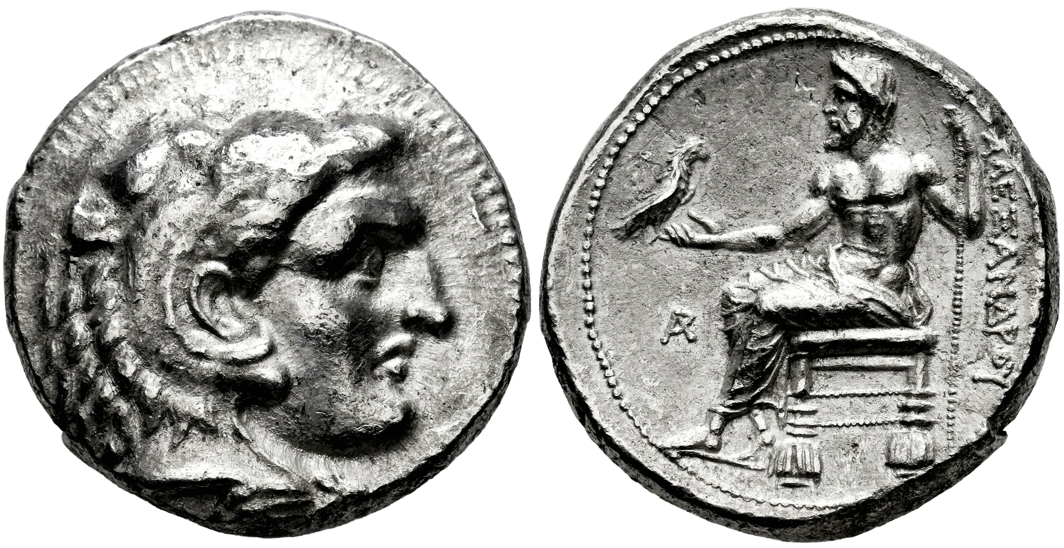Ptolemaic Kings of Egypt. Ptolemy I Soter, as satrap. Tetradrachm. 320/19-311/10 BC. Arados. In the name and types of Alexander III of Macedon. (Price-3426 (Byblos)). (Müller-1375). Anv.: Head of Herakles to right, wearing lion skin headdress. Rev.: Zeus Aëtophoros seated to left, holding sceptre; AΛEΞANΔPOY to right, AP (civic monogram) in left field. Ag. 16,91 g. Choice VF/Almost XF. Est...400,00.