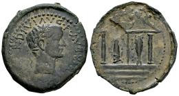 Abdera. Time of Tiberius. Unit. 14-36 BC. Adra (Almería). (Abh-24). (Acip-3303). Anv.: (TI. CAESA)R. DIVI. AVG. F. AVGVS(TVS). Laureate head of Tiberius right. Rev.: Tetrastyle temple, star on the tympanum. Ae. 8,48 g. Slight minting defect. Very scarce. Choice VF. Est...250,00.