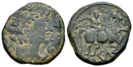 Kelse-Celsa. Unit. 120-50 BC. Velilla de Ebro (Zaragoza). (Abh-781). Anv.: Male head right, three dolphins around. Rev.: Horseman right, holding reins, iberian legend KELSE on line below. Ae. 12,17 g. Almost VF. Est...80,00.