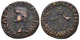 Ilici. Time of Tiberius. Half unit. 14- 36 AD. Elche (Alicante). (Abh-1529). (Acip-3210). Anv.: TI. CAESAR. DIVI. AVG. F. AVG. P. M. Head of Tiberius left. Rev.: Vexillum between eagles, L. TER. LON. L. PAP. AVIT. II. VIR. Q. C.I.I.A around. Ae. 6,13 g. A good sample. Scarce in this grade. Choice VF. Est...150,00.