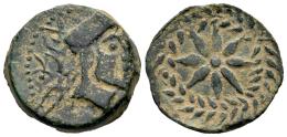 Malaka. Half unit. 200-20 BC. Malaga. (Abh-1733). (MIB-10/26a). (Acip-802). Anv.: Head of Vulcan right with square cap, punic legend and tongs behind. Rev.: Eight-rayed star. Ae. 7,11 g. VF/Choice VF. Est...100,00.
