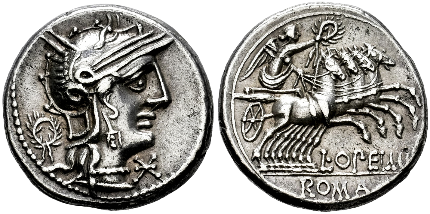 Opeimius. L. Opeimius. Denarius. 131 BC. Rome. (Ffc-949). (Craw-253/1). (Cal-1055). Anv.: Head of Roma right, below chin, wreath behind. Rev.: Victory in quadriga right, holding reins in left hand and wreath in right hand, L. OPEIMI, below horses. ROMA in exergue. Ag. 3,93 g. Ex J. Herrero (10/12/2015), lot 192. Included original label. Almost XF. Est...200,00.