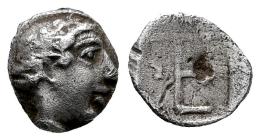 Ionia. Kolophon. Tetartemorión. 450-410 BC. (SNG Kayhan-358/361). Anv.: Persic standard. Laureate head of Apollo to right. Rev.: TE monogram; uncertain symbol (astragalus?) in left field; all within incuse square. Ag. 0,32 g. VF/Almost VF. Est...50,00.