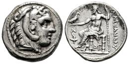 Kingdom of Macedon. Kassander. Tetradrachm. 315-294 BC. Amphipolis. Struck as regent or king, in the name and types of Alexander III. (Price-447). (Müller-37). (Ehrhardt-35). Anv.: Head of Herakles to right, wearing lion's skin headdress. Rev.: Zeus Aëtophoros seated to left, holding sceptre; AΛEΞANΔPOY to right, Λ above torch in left field, monogram below throne. Ag. 17,12 g. Choice VF. Est...300,00.