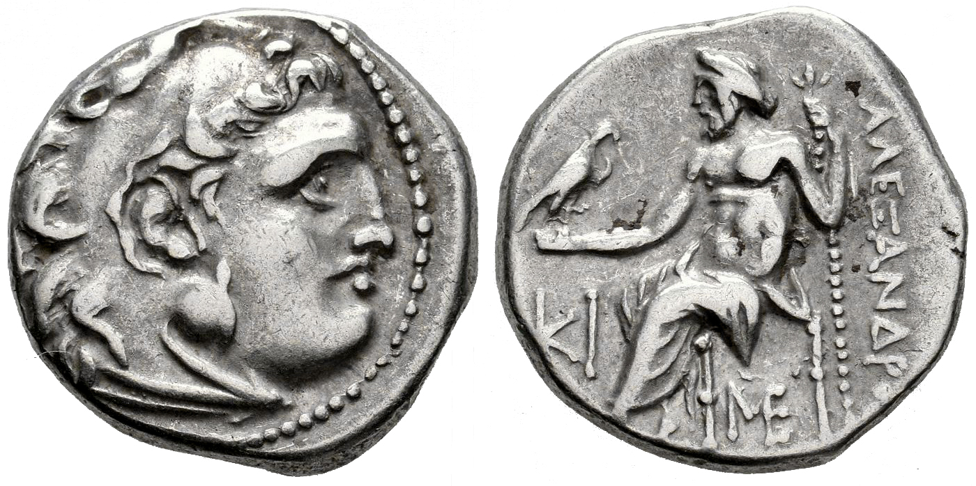 Kingdom of Macedon. Antigonos I Monophthalmos. Drachm. 310-301 BC. Lampsakos. Struck as Strategos or king of Asia, in the name and types of Alexander III. (Price-1406). (Müller-821). Anv.: Head of Herakles to right, wearing lion skin headdress. Rev.: Zeus Aëtophoros seated to left, holding sceptre; AΛΕΞΑΝΔΡΟ(Υ) to right, KI in left field, ME monogram below throne. Ag. 4,38 g. Almost XF/Choice VF. Est...120,00.