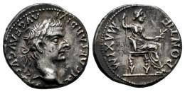 Tiberius. Denarius. 36-37 AD. Lugdunum. (Ric-I 30). (Bmcre-48). (Rsc-16a). Anv.: TI CAESAR DIVI AVG F AVGVSTVS, laureate head to right. Rev.: PONTIF MAXIM, Livia as Pax seated to right on chair with ornamented legs, her legs draped resting on footstool, holding sceptre and branch; on singular exergual line . Ag. 3,92 g. Patina. Almost XF. Est...350,00.