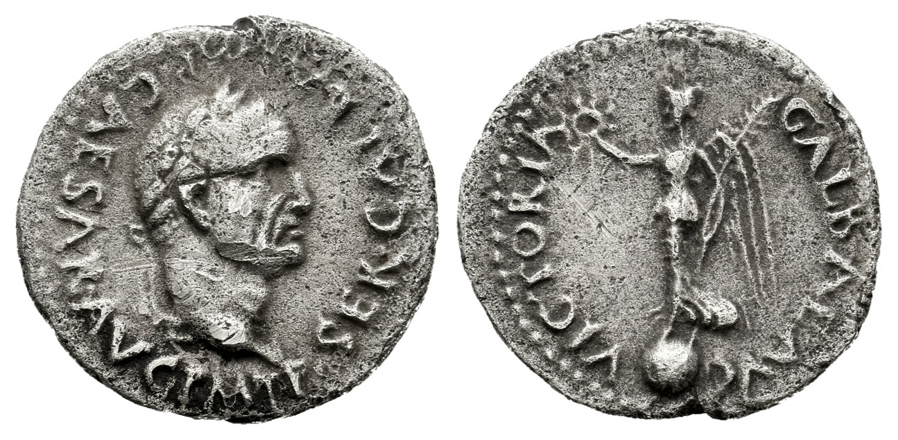 Galba. Quinarius. 68-69 AD. Lugdunum. (Ric-I 131). (Bmcre-246). (Rsc-318). Anv.: SER GALBA IMP CAESAR AVG P M T P, laureate head to right. Rev.: VICTORIA GALBAE AVG, Victory standing to left on globe, holding wreath in outstretched right hand and palm over left shoulder.. Ag. 1,51 g. Porosities in metal. Minor scratches. Scarce. Almost VF/VF. Est...250,00.
