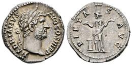 Hadrian. Denarius. 134-138 AD. Rome. (Ric-II 3 2025). (Bmcre-685). (Rsc-1030). Anv.: HADRIANVS AVG COS III P P, bare head to left. Rev.: PIETAS AVG, Pietas standing to left, altar on ground, raising both hands. Ag. 3,33 g. Ex Soler & Llach (28/01/2010), lot 165. Almost XF. Est...150,00.