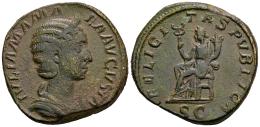 Julia Mamaea. Sestertius. 230 AD. Rome. (Ric-IV 679). (Bmcre-662). (C-26). Anv.: IVLIA MAMAEA AVGVSTA, diademed and draped bust to right. Rev.: FELICITAS PVBLICA, Felicitas seated to left, holding caduceus and cornucopiae; SC in exergue. Ae. 23,22 g. VF/Choice VF. Est...90,00.