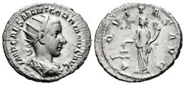 Gordian III. Antoninianus. 238-244 AD. Rome. (Ric-IV 177). (Rsc-17). Anv.: IMP CAES M ANT GORDIANVS AVG, radiate, draped and cuirassed bust to right. Rev.: AEQVITAS AVG, Aequitas standing to left with sceptre and scales. Ag. 3,77 g. Choice VF/VF. Est...50,00.