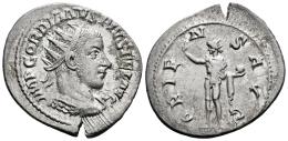 Gordian III. Antoninianus. 242-244 AD. Antioch. (Ric-IV 213). (Rsc-167). Anv.: IMP GORDIANVS PIVS FEL AVG, radiate and cuirassed bust to right. Rev.: ORIENS AVG, Sol standing to left, raising hand and holding globe. Ag. 4,49 g. Large flan. Choice VF. Est...60,00.