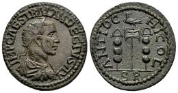 249-251 d.C. Pisidia. Anv.: IMP CAES TRAIAN DECIVS AV. Busto radiado, con coraza a la derecha. Rev.: ANTIOCHI COL CA. Vexillum coronado por un águila, entre dos estandartes; S R en exergo. 7,78 g. A good sample for this type. Est...150,00.
