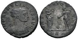 Aurelian. Antoninianus. 274-275 AD. Serdica. (Ric-V 1 298). (MER/RIC-2735). Anv.: IMP AVRELIANVS P AVG, radiate and cuirassed bust to right. Rev.: RESTITVT ORBIS, female figure standing to right, crowning with wreath emperor standing to left and holding sceptre; star in central field, KA•A• in exergue. Bi. 3,66 g. Ex Artemide Aste (19/09/2009). Almost VF/VF. Est...50,00.