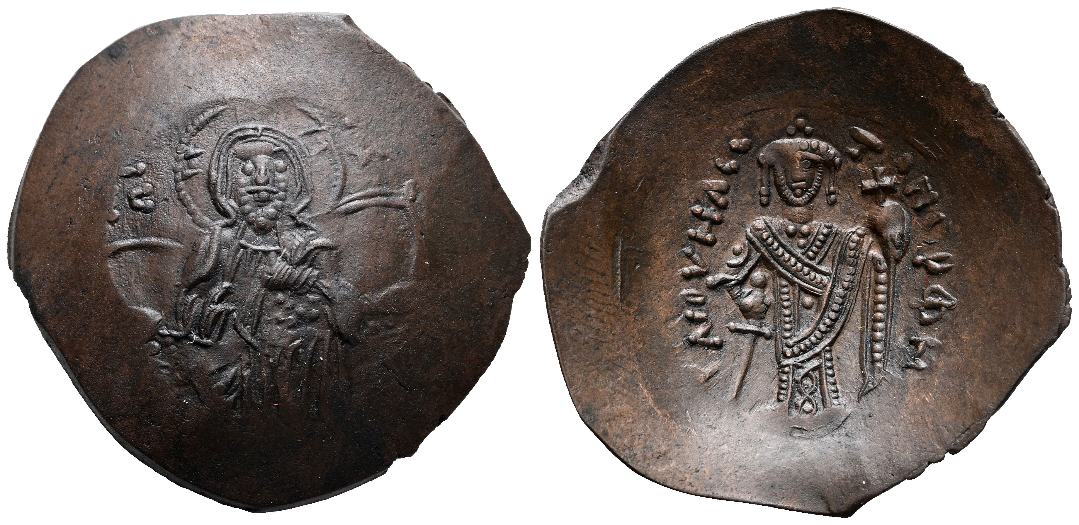 Latin Rulers of Constantinople. Aspron Trachy. 1204-1261 AD. Constantinople. (Doc-31). (Sear-2045). Anv.: IC-XC. Christ Pantokrator enthroned facing. Rev.: Emperor standing facing, holding sword and globus cruciger. Bi. 4,58 g. Almost XF. Est...45,00.