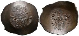 Latin Rulers of Constantinople. Aspron Trachy. 1204-1261 AD. Constantinople. (Doc-31). (Sear-2045). Anv.: IC-XC. Christ Pantokrator enthroned facing. Rev.: Emperor standing facing, holding sword and globus cruciger. Bi. 4,06 g. Almost XF/XF. Est...60,00.