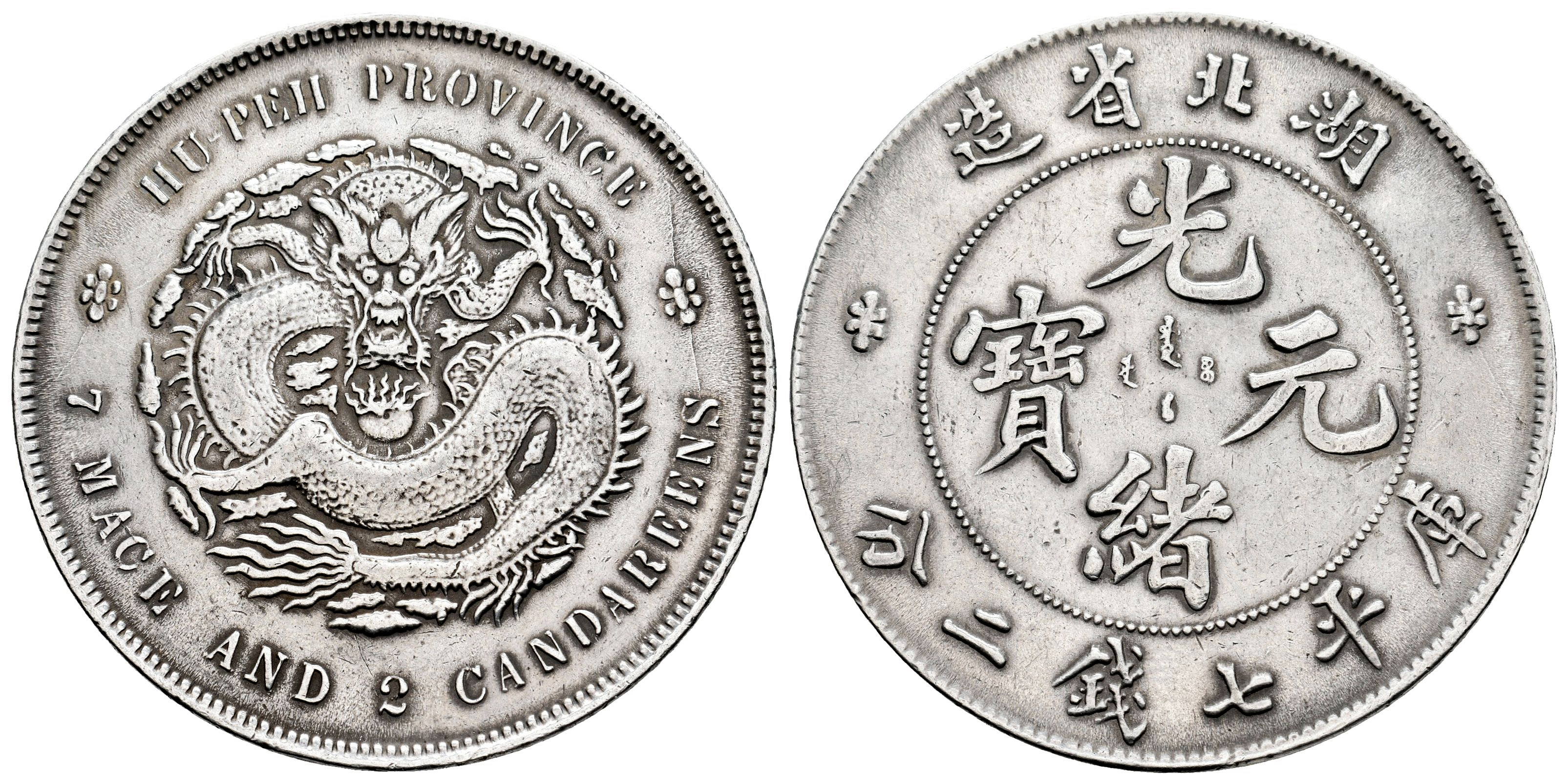 China. Hupeh. 1 dollar - 7 mace 2 candareens. ND (1895-1907). Kuang-hsu (Guangxu). Wuchang mint. (Km-Y127.1). (L&M-182). Ag. 26,71 g. Cleaned. Choice VF. Est...200,00.