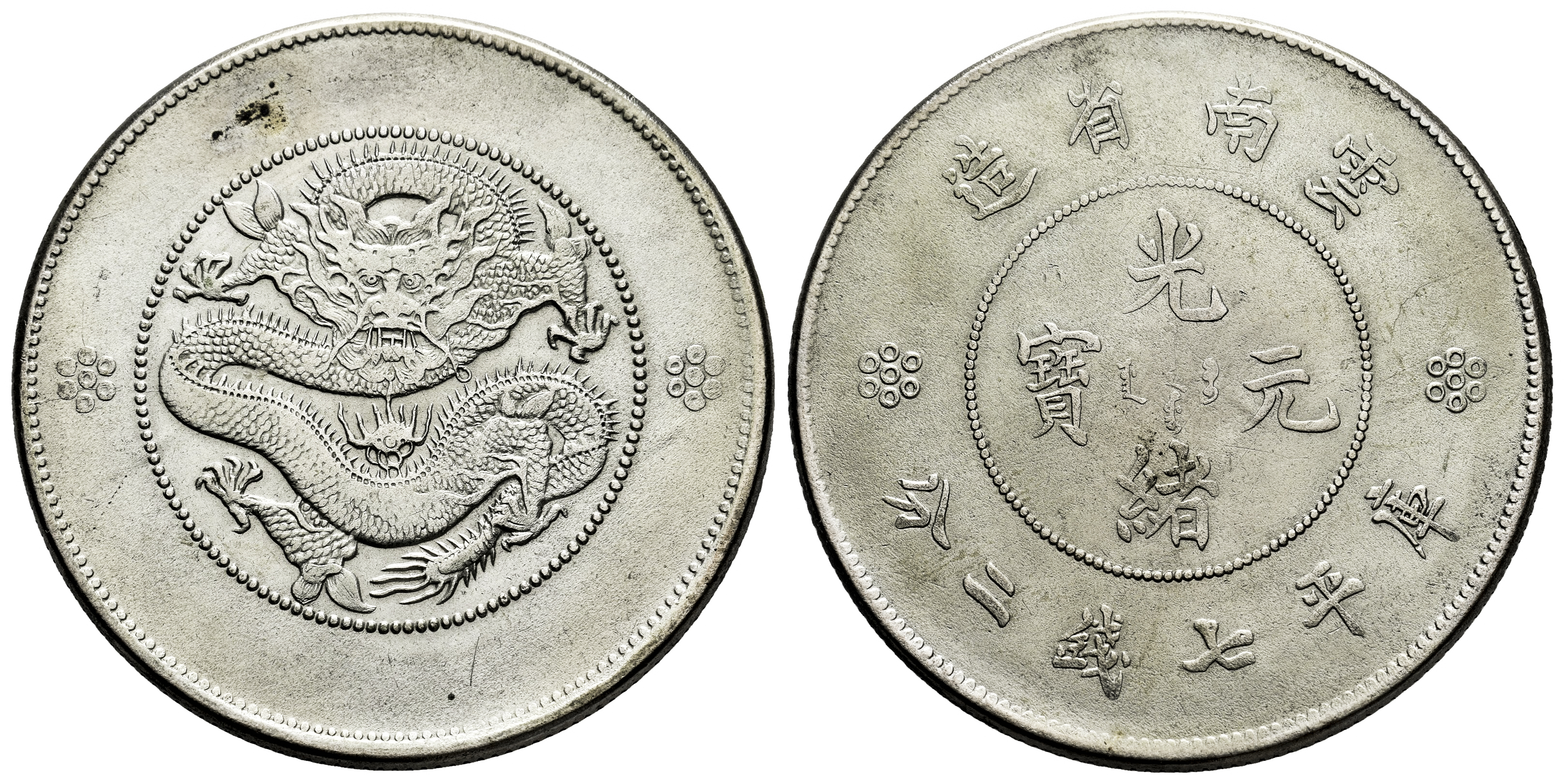 China. Yunnan. 1 dollar. ND (1911). Kunming Mint. In the name of Kuang-hsu (Guangxu). (Km-Y258). (L&M-421). (Kann-169). Ag. 26,65 g. Choice VF. Est...120,00.