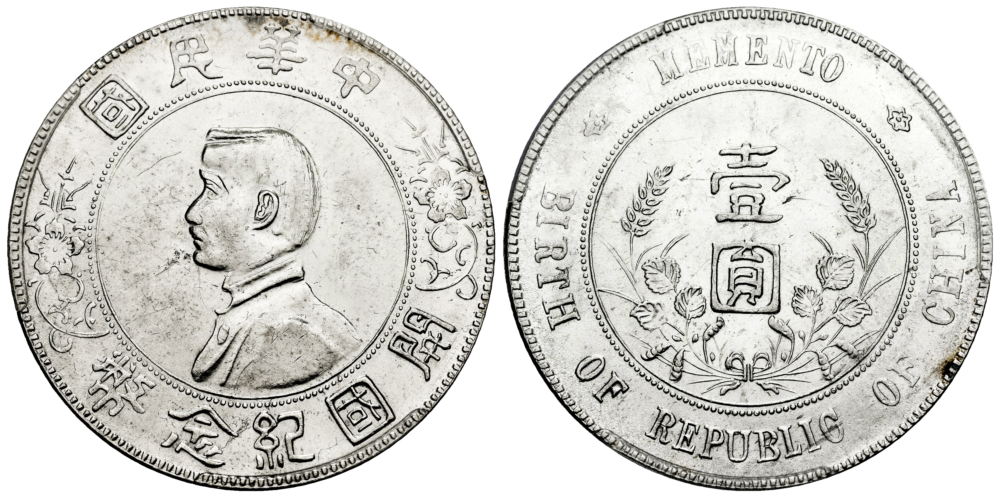 China. Sun Yat-sen. Memento Dollar. ND (1927). (Km-Y318a). (L&M-49). Ag. 6-pointed stars on the legend of the reverse. Slabbed by PCGS as Cleaned UNC Detail. Est...200,00.