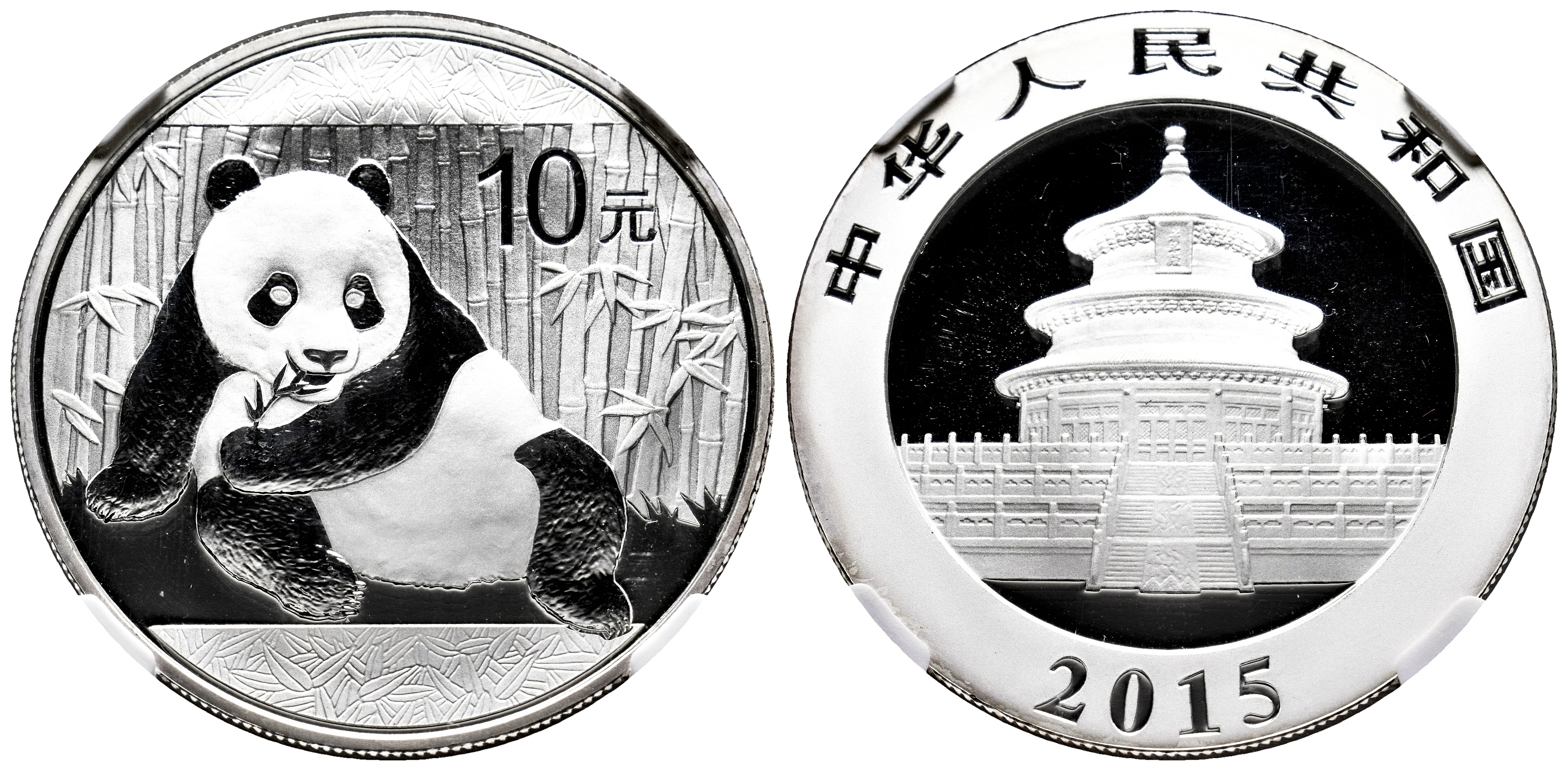 China. 10 yuan. 2015. Panda Series. (Km-2216). Ag. Slabbed by NGC as MS 70. Est...70,00.