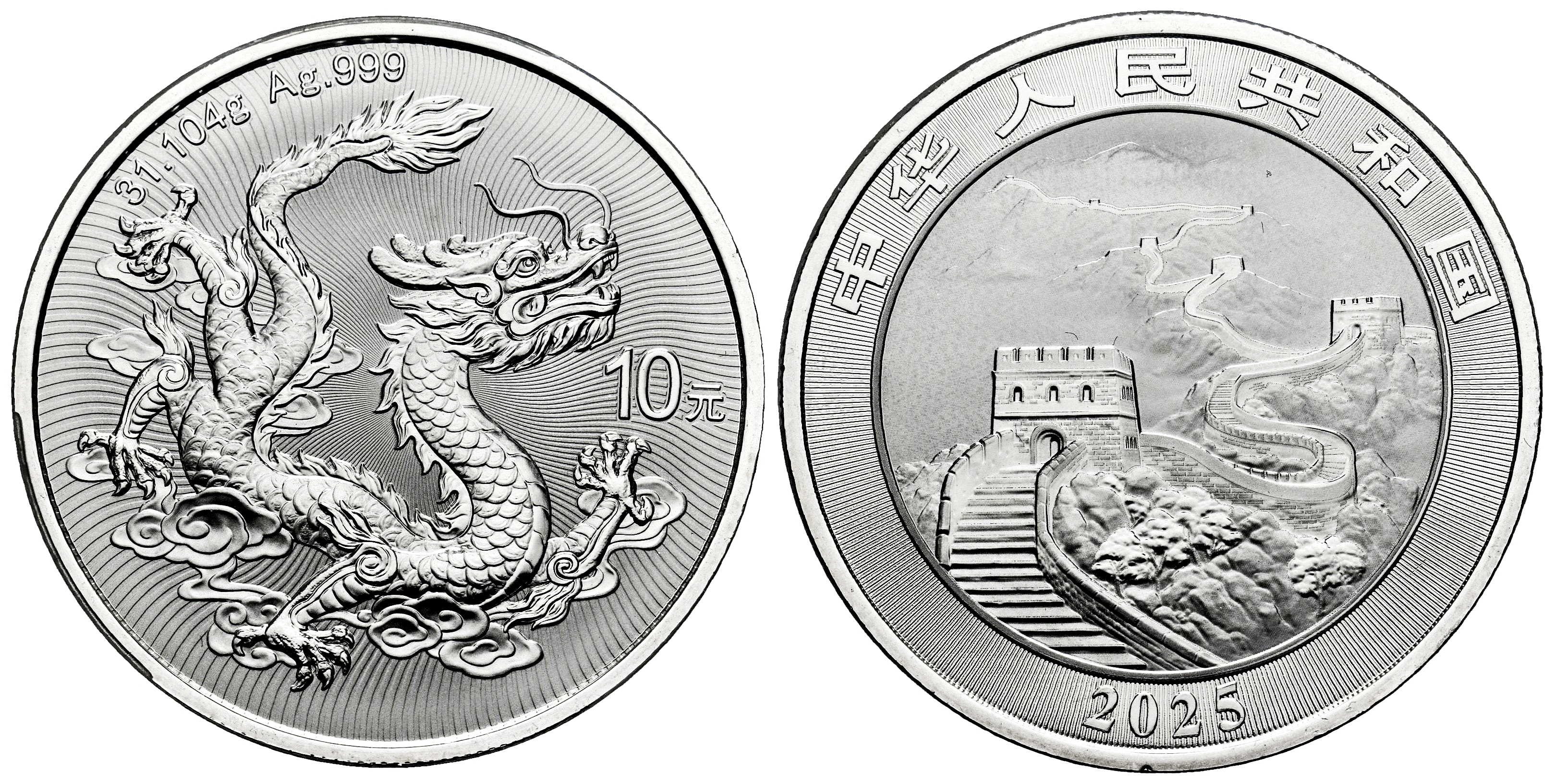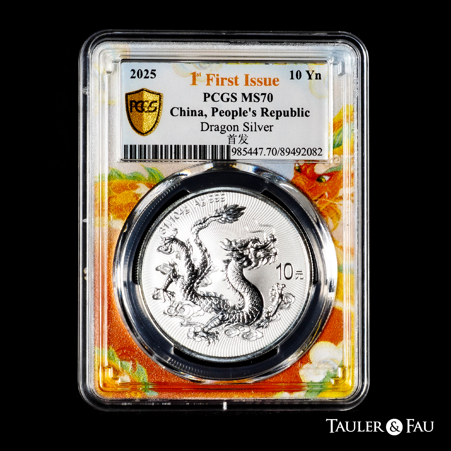 China. 10 yuan. 2025. Shenzhen. Dragon Series. (Km-2098). Ag. Dragon Series. Slabbed by PCGS as MS 70, 1st First Issue. Est...100,00.
