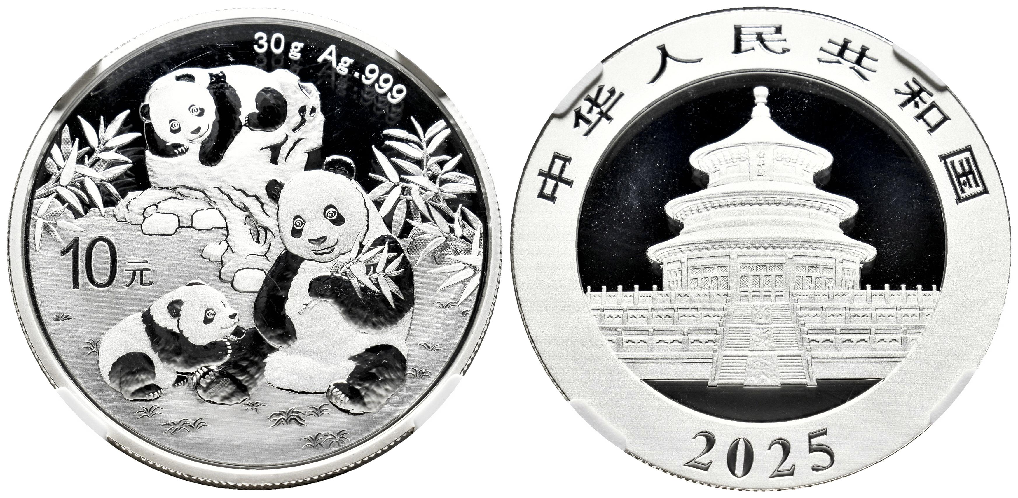 China. 10 yuan. 2025. Shenzhen. Panda Series. (Km-2885). Ag. 30,00 g. Slabbed by NGC as MS 70, Early Releases. Est...70,00.