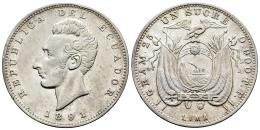 Ecuador. 1 sucre. 1891. Lima. TF. (Km-53.3). Ag. 24,79 g. Choice VF. Est...50,00.