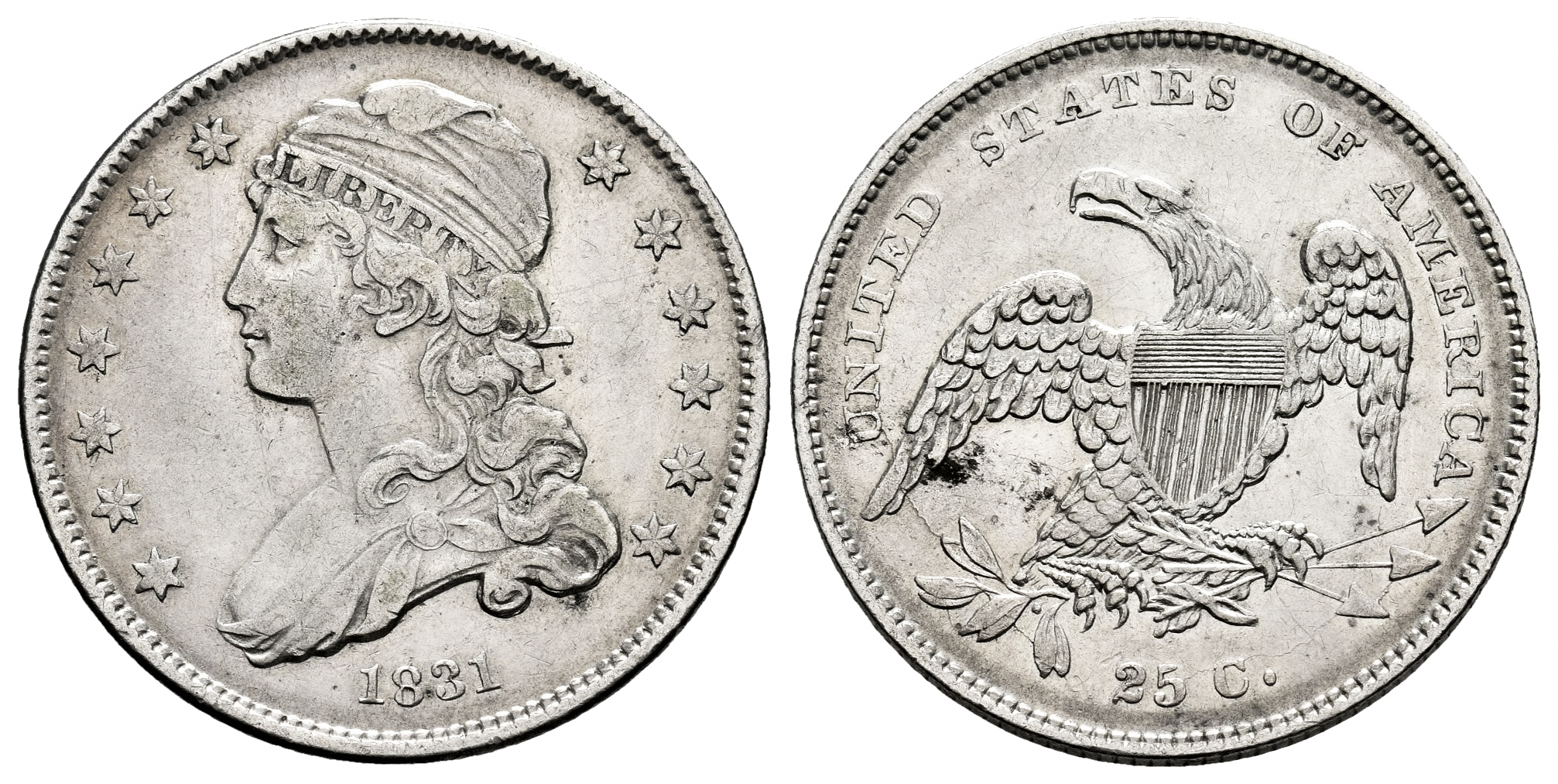 U.S. Coins. Liberty Cap Quarters. 1/4 dollar. 1831. Philadelphia. (Km-55). Ag. 6,74 g. Cleaned. VF. Est...120,00.