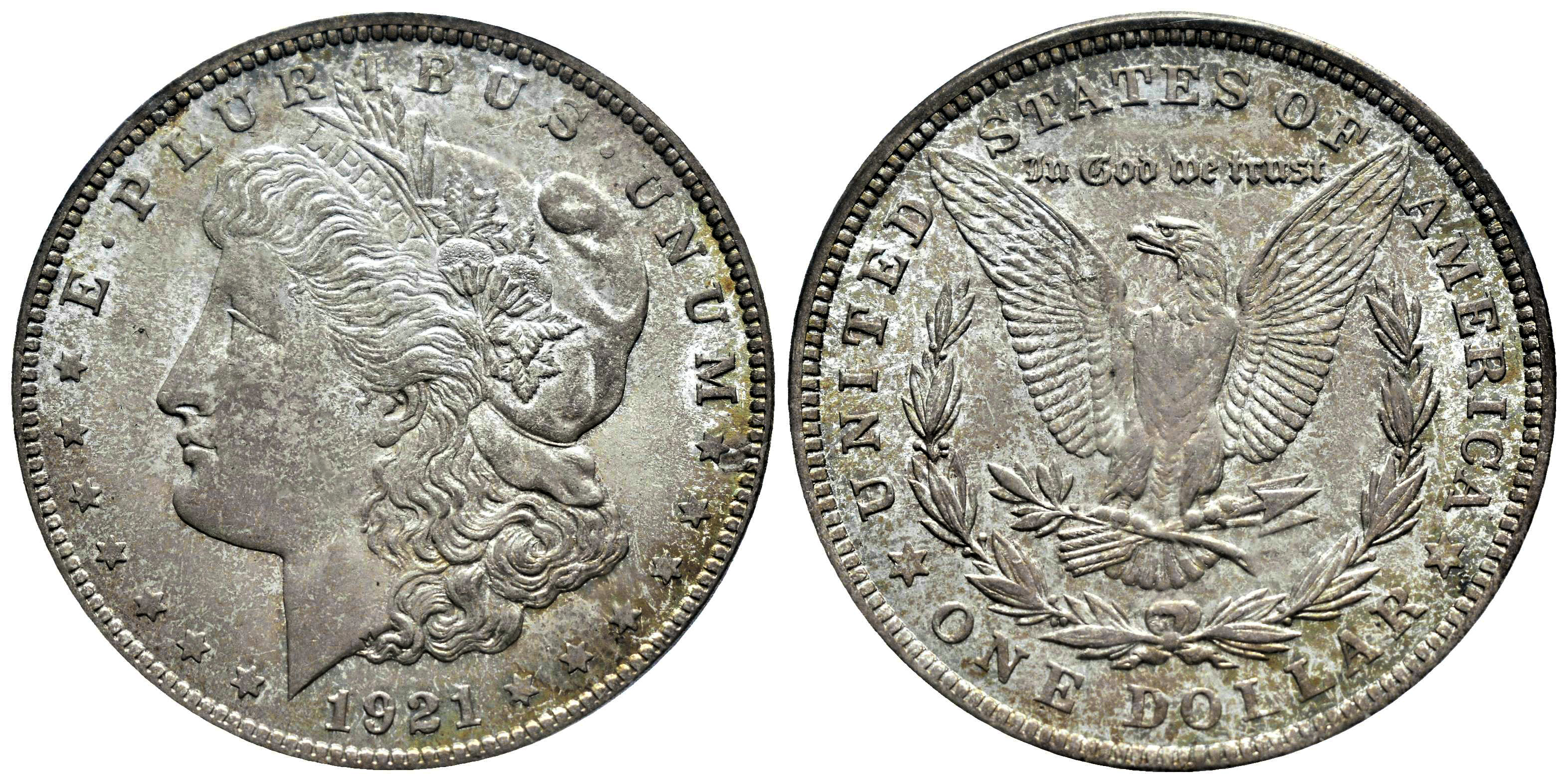 U.S. Coins. Morgan Dollars. 1 dollar. 1921. Philadelphia. (Km-110). Ag. Slabbed by PCGS as MS 64. Est...90,00.
