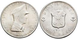 Philippines. 1 peso. 1947. San Francisco. S. (Km-185). Ag. 20,10 g. Douglas MacArthur Centennial. Original luster. Almost MS. Est...25,00.