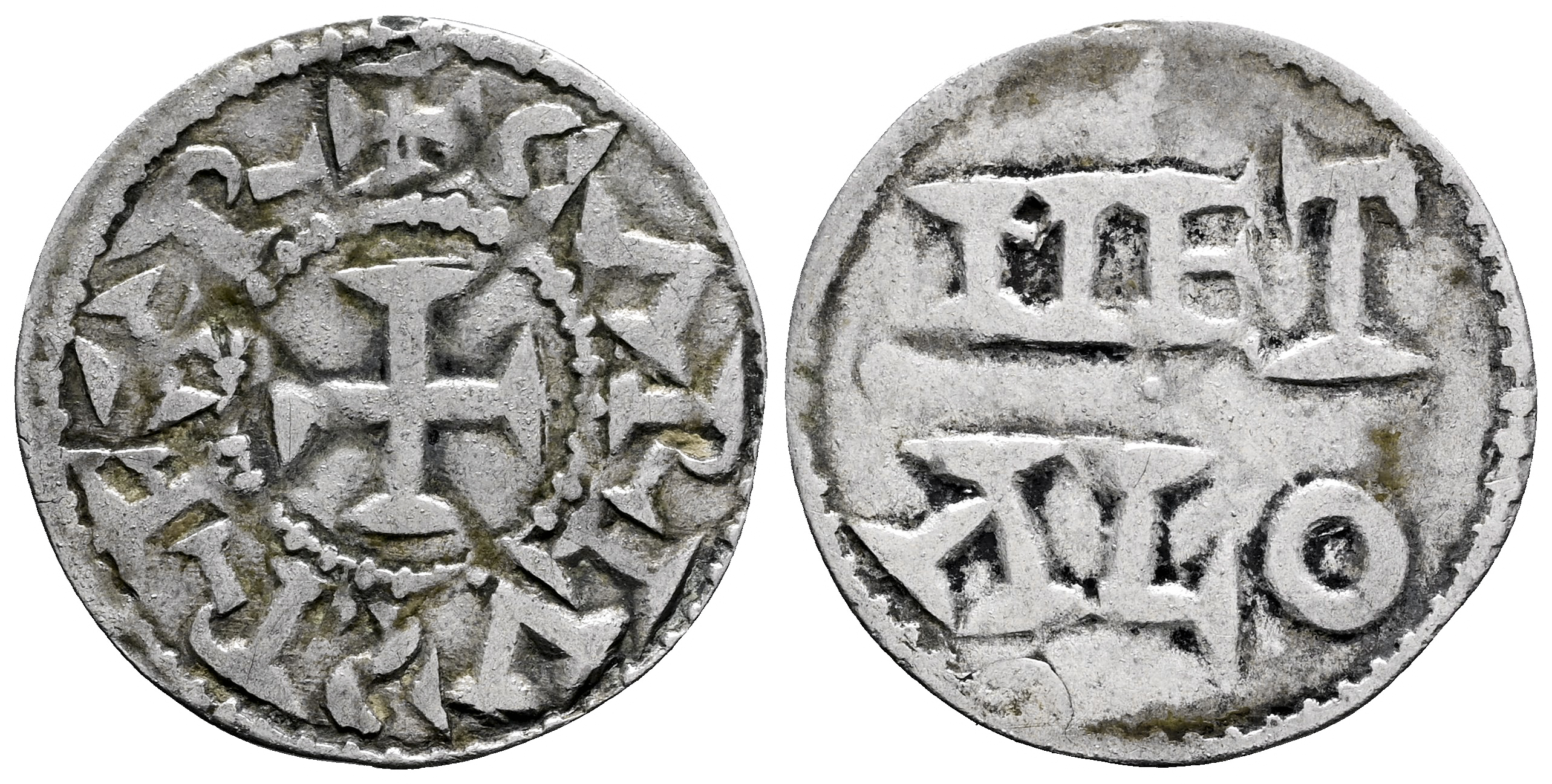France. Carolingian Coinage. Charles The Simple (898-923). Denier. Melle. (Depeyrot-629). (Poey d'Avant-pl. LIV, 1). (M.E.C.-1). Anv.: + CΛROLVƧ REX R. Cross. Rev.: MET/•/ΛLO in three lines. Ag. 1,01 g. VF. Est...100,00.