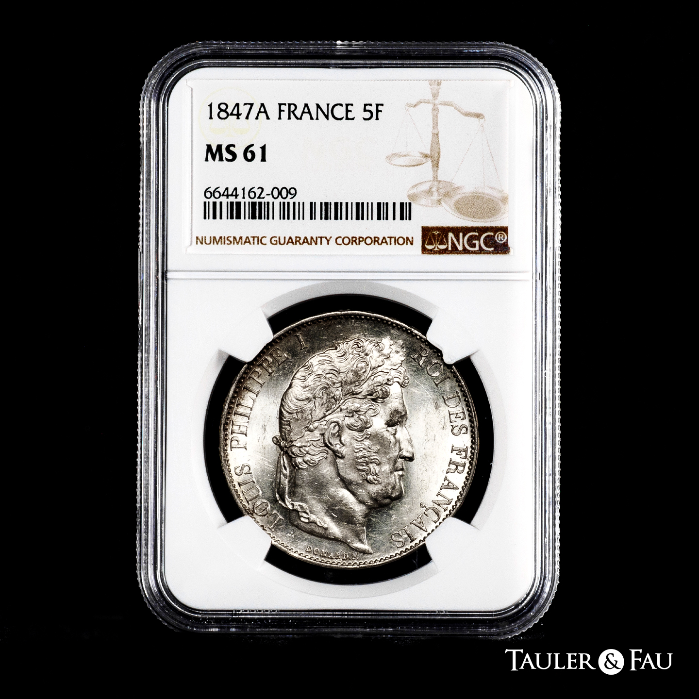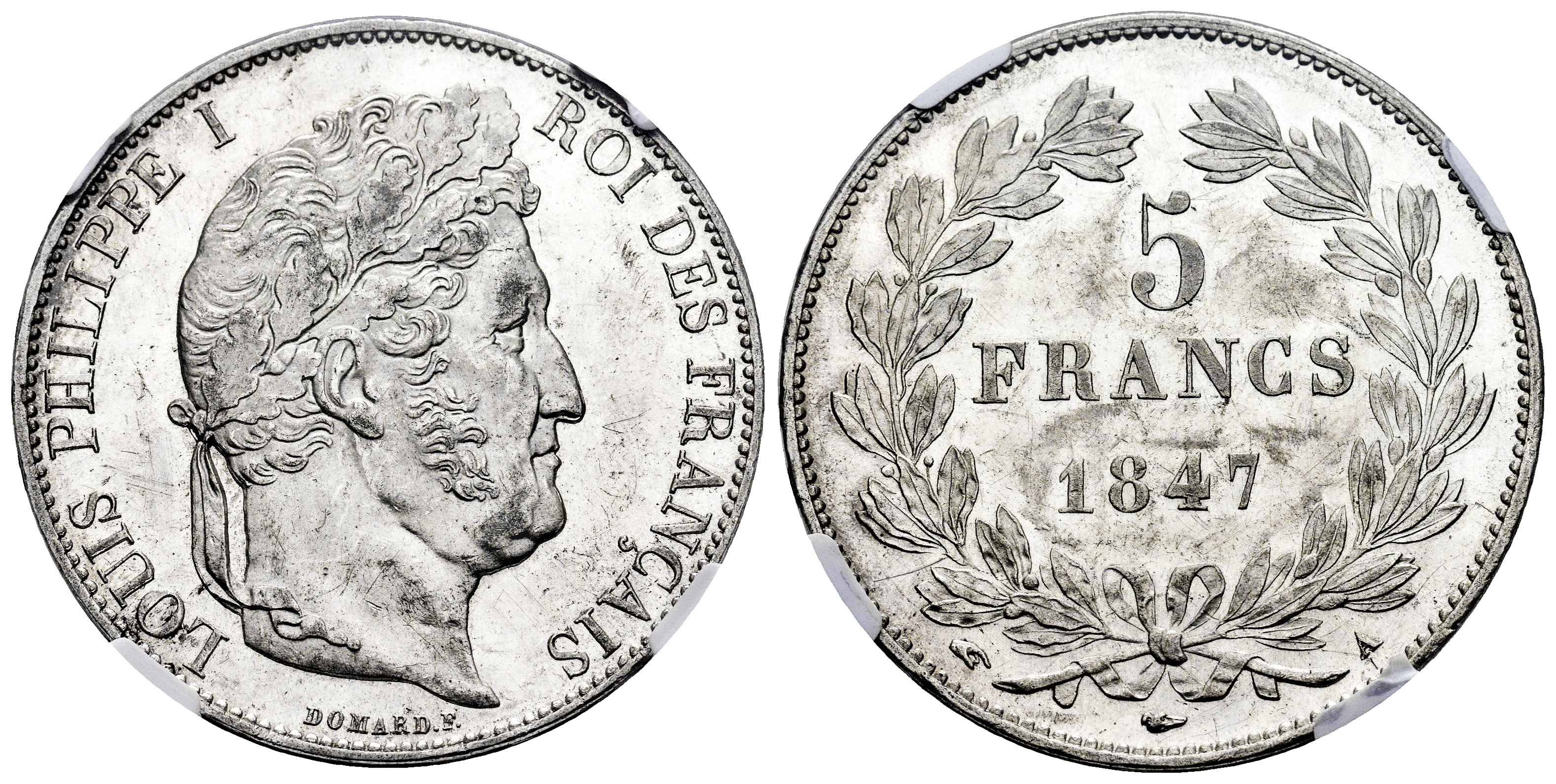France. Louis Philippe (1830-1848). 5 francs. 1874. Paris. A. (Km-749.1). (Gad-678a). (Dav-91). Ag. Original luster. Slabbed by NGC as MS 61. Est...300,00.