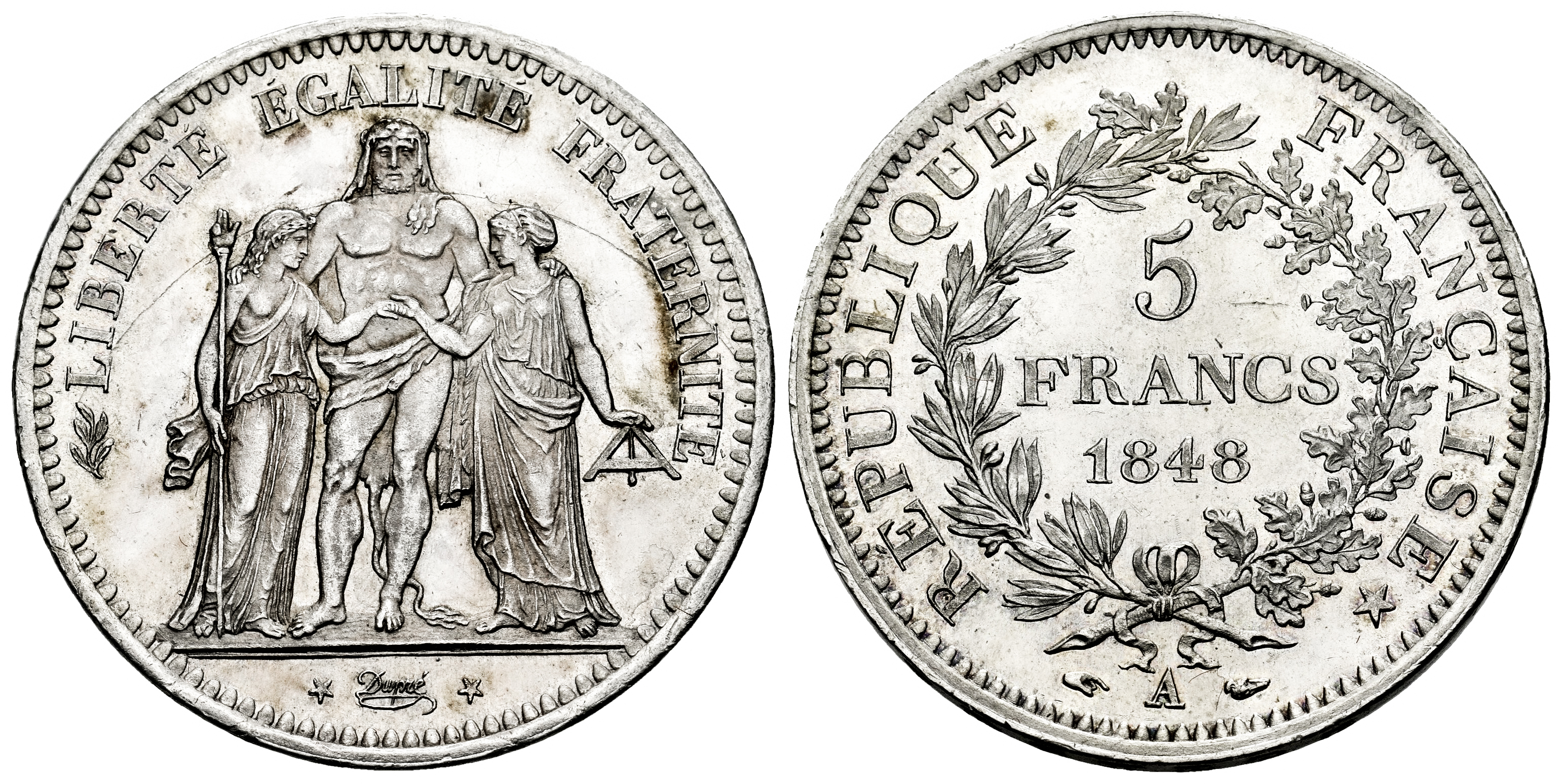 France. II Republic. 5 francs. 1848. Paris. A. (Km-756.1). Ag. 25,09 g. Minor contact marks. Original luster. AU. Est...300,00.